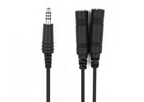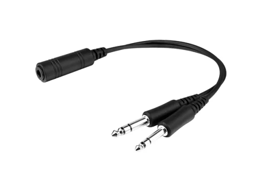 Adapts your single-plug helicopter connector for General Aviation Civilian Helicopters to dual-plug GA fixed wing headset connectors.